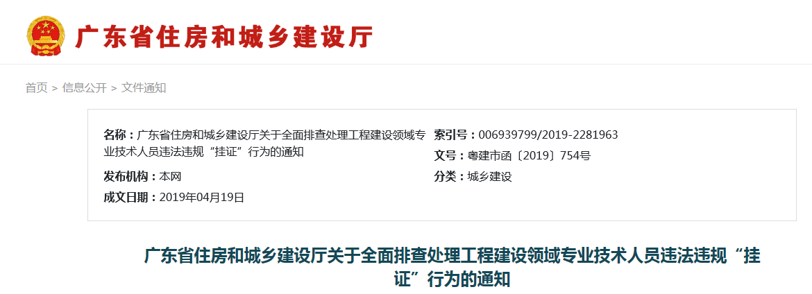根據(jù)住建部《住房城鄉(xiāng)建設(shè)部辦公廳等關(guān)于開展工程建設(shè)領(lǐng)域?qū)I(yè)技術(shù)人員職業(yè)資格“掛證”等違法違規(guī)行為專項(xiàng)整治的通知》(建辦市〔2018〕57號(hào))、住建部“掛證”補(bǔ)充通知(建辦市函〔2019〕92號(hào)),省住建廳轉(zhuǎn)發(fā)住建部通知(粵建市〔2018〕259號(hào)),以及我市轉(zhuǎn)發(fā)省住建廳通知(深建設(shè)〔2019〕9號(hào))等文件要求……
